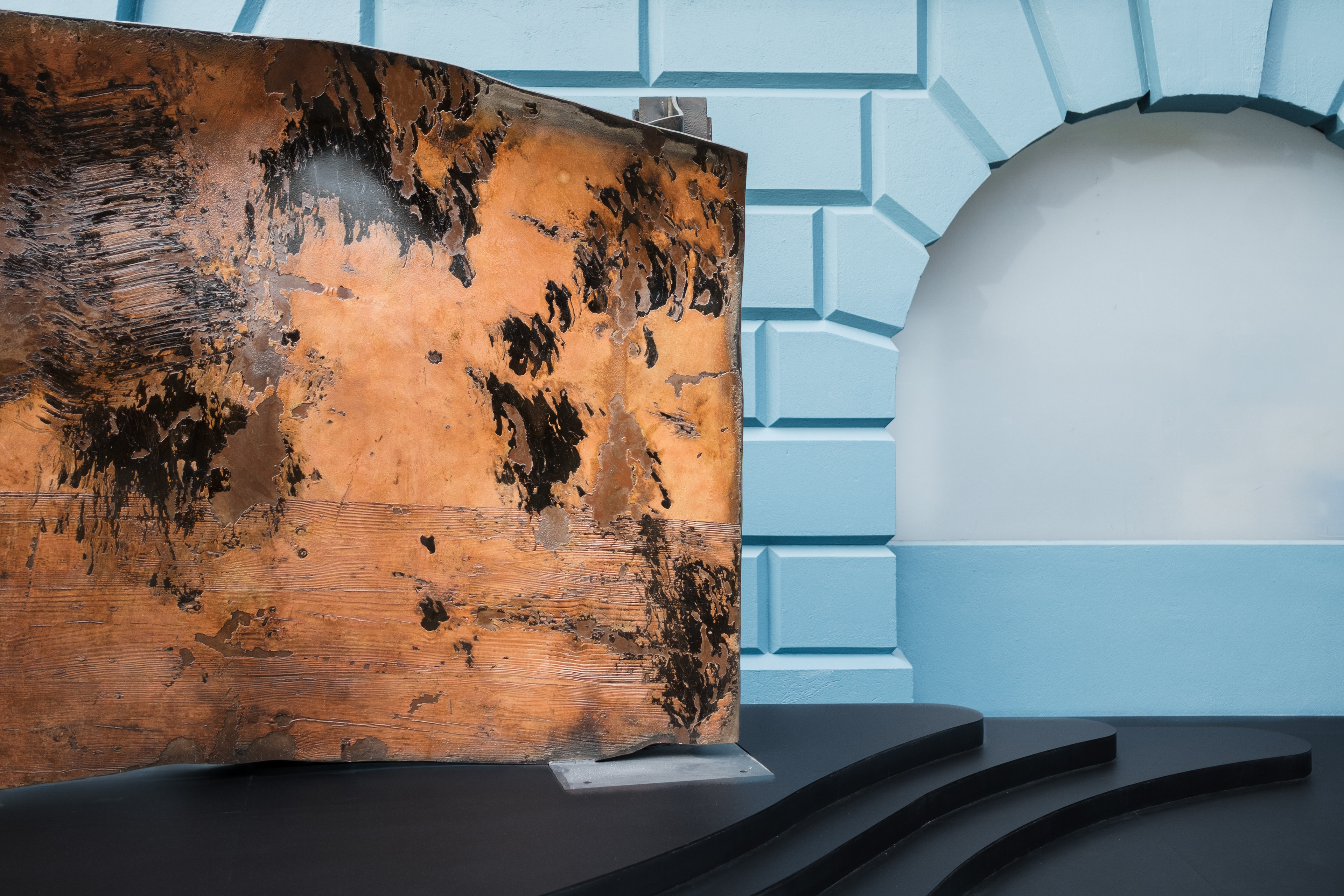 Using sustainable, recycled materials such as recycled paper (Richlite) for plinth cladding and recycled plastics (Smile Plastics) for the graphic panels, the display reflects the museum’s commitment to telling urgent, contemporary stories through responsible design practice.